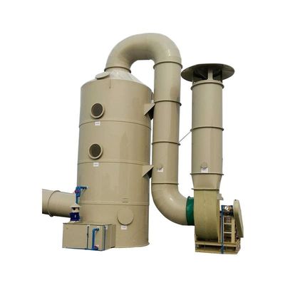 Het uitlaatgas wordt door de windpijp in de zuiveringstoren gebracht.het uitlaatgas en de absorptievloeistof volledig worden blootgesteld aan de absorptie- en neutralisatiereactie van de gas-vloeistof tweefasige reactieNa de zuivering van het uitlaatgas wordt de ventilator in de atmosfeer vrijgegeven door uitdroging van de mistverwijderplaat en de mistverwijder.De absorptie vloeistof wordt onder druk gebracht door de pomp aan de onderkant van de toren en vervolgens gespoten naar beneden op de top van de torenDe zuiverde zuurmist uitlaatgassen zijn lager dan de nationale emissie norm.